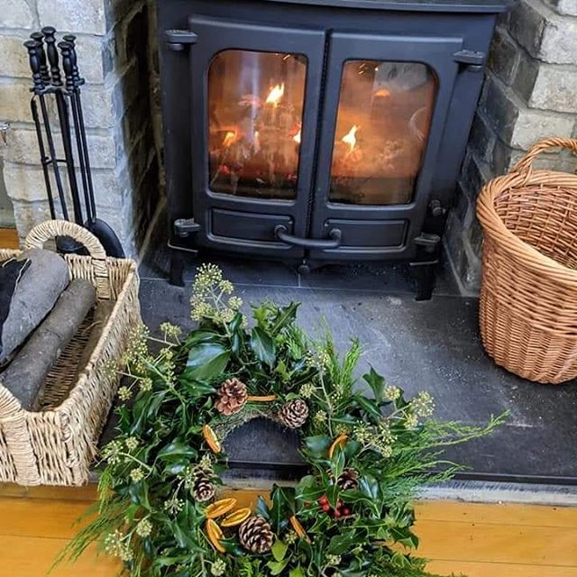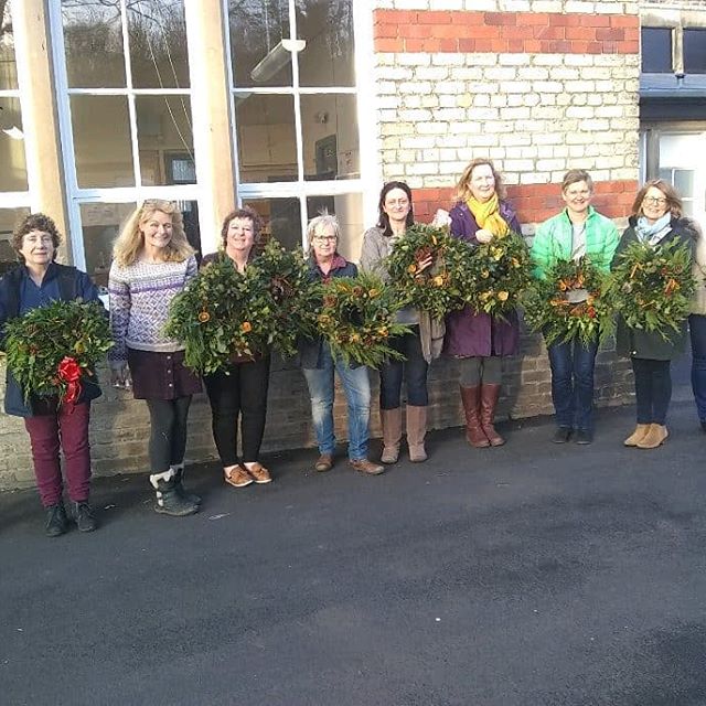 Festive wreath making in our cosy meeting room today with Janet McKie and The Hop Garden, High Spen #feelingfestive #creativity #handmade #naturalmaterials #evergreen #hollyberries #orangeslices #fireside