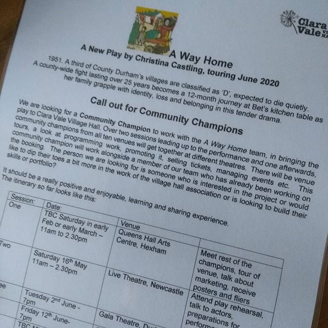 Fantastic volunteer/ creative arts opportunity for a Community Champion to join the team of ‘A Way Home’ @awayhomeplay , a play touring the north east next Read more